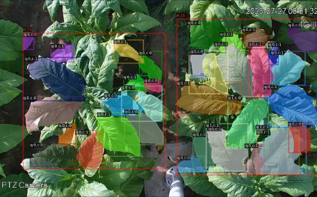 大田管理階段,通過AI智能攝像機不間斷拍攝大田煙株生長發育過程,構建煙株大田生長發育模型,精準計算煙株整體葉片數,輔助開展精準測產。通過AI智能攝像機不間斷拍攝大田煙株生長發育過程,構建煙株大田生長發育模型。